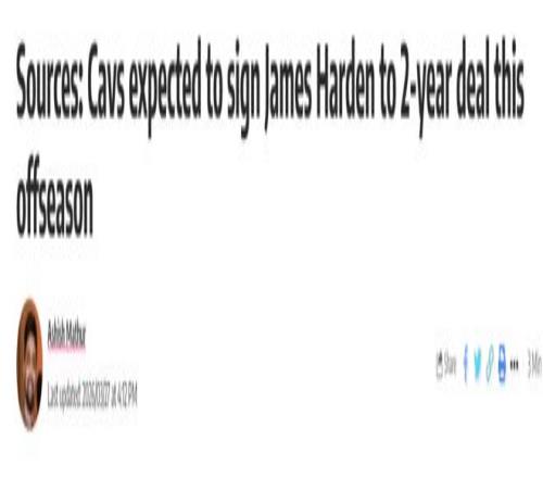北京时间3月28日,据Cavaliers Nation消息人士透露,克利夫兰骑士预计将在今年休赛期与詹姆斯-哈登签下一份两年合同。