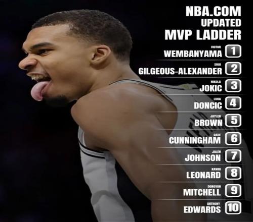 经常关注MVP排名(我们每周都会报道)的兄弟应该都注意到了,本周最大的不同就是,原本长期占据MVP第一的亚历山大居然掉到了第二,并且被文班亚马完成了反超,这也是文班亚马生涯第一次登顶官方MVP榜。