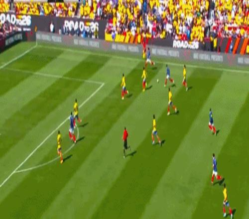 哥伦比亚在第77分钟利用法国后防失误追回一球。